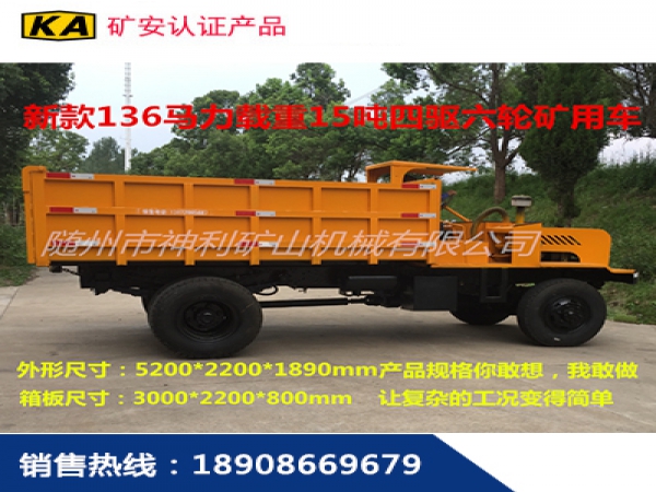 新款載重15噸礦用四驅車,**大載重爬坡25度,采用分時四輪驅動氣動**,后驅四驅輕松轉換,配備136馬力增壓發動機,12檔帶高低速變速箱,堅固耐用,尺寸可根據巷道環境訂制。柴油機和變速箱直接傳動,動力更強勁,載重量大。